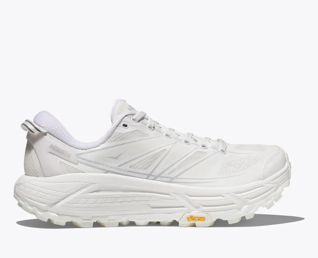 The MAFATE SPEED 2 was built to offer support and cushioning in technical terrain over any distance. This update features a deep Active Foot frame for support, and a tuned Meta-Rocker to facilitate smooth transitions through the gait cycle. The outsole utilizes deep flex grooves to adapt to a variety of terrain, and the 5mm Vibram Mega-Grip tread grips even the trickiest surfaces. The MAFATE SPEED 2 is ready to perform mile after mile, however far your trail adventure takes you.