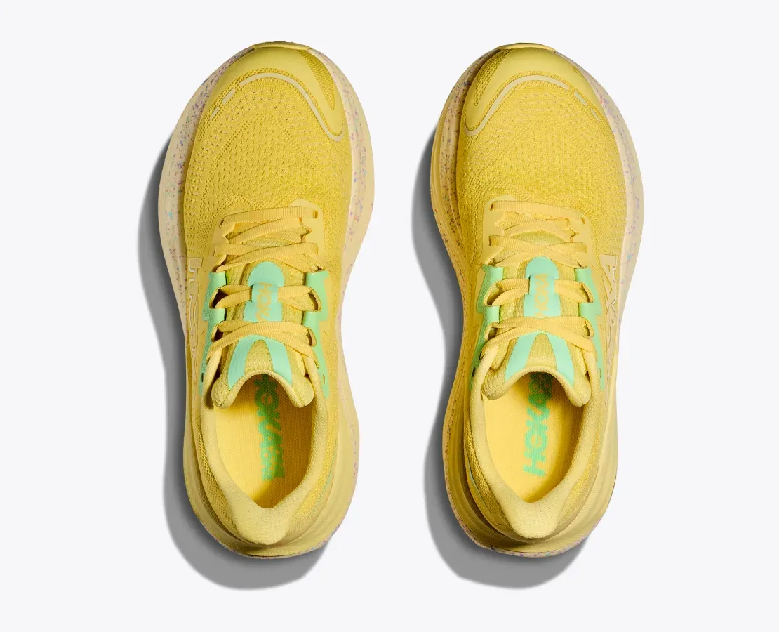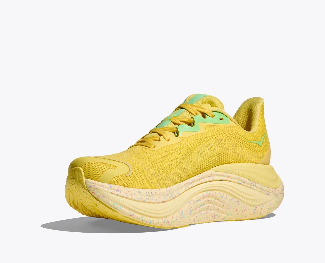 We threw out the rulebook when creating the Skyward X. Pushing soft and smooth to the extreme, this cushy new trainer features a revolutionary suspension system with a convex carbon fiber plate that allows the suspension system to compress and spring back with each step. A soft, highly resilient PEBA foam sits closest to the foot for a lively, cushioned ride, while a super critical EVA frame provides a stable base for your easiest miles yet.